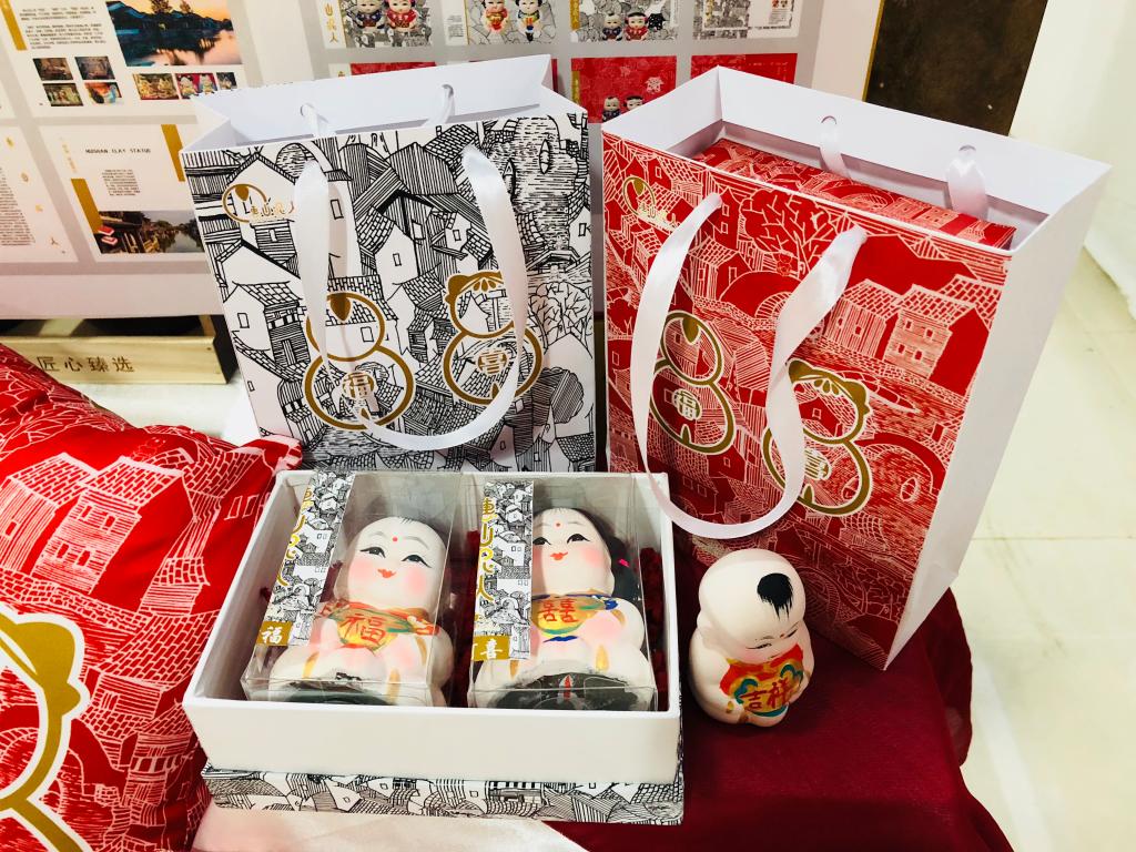 本次惠山泥人旅游纪念品包装设计基于惠山泥人产品本身特性,将以集惠山泥人标志设计、插画设计、阿福、阿喜形象设计为一体的以及系列化包装设计为设计路线进一步创新设计,其中惠山泥人旅游纪念品包装设计以高、中、低三个档次进行设计,分别采用矩形盒装、左右套盒装以及礼盒装三种包装形式,方便消费者针对自身需求购买选择。