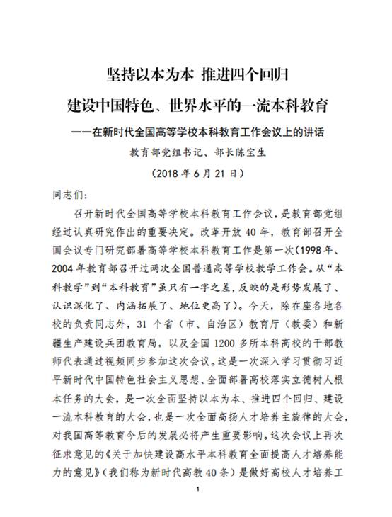 【转载】教育部部长在新时代全国高等学校本科教育工作会议上的讲话