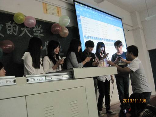 为了丰富同学们的大学生活,2013年11月6日晚上,营销与策划(广告方向)2班在一教307教室举行了“我的大学,我做主”主题活动。