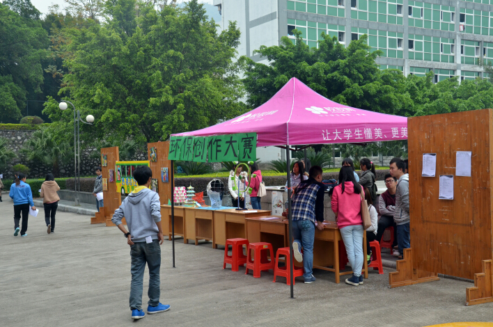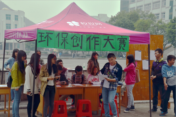 本次大赛以“环保”为主题活动,活动对象为本校全体学生,参赛形式主要有平面类、模型类、摄影类等。活动宣传当天,同学们积极投入,认真配合学长学姐们的安排,在场报名的同学陆陆续续到来,使得宣传得到了很好效果。